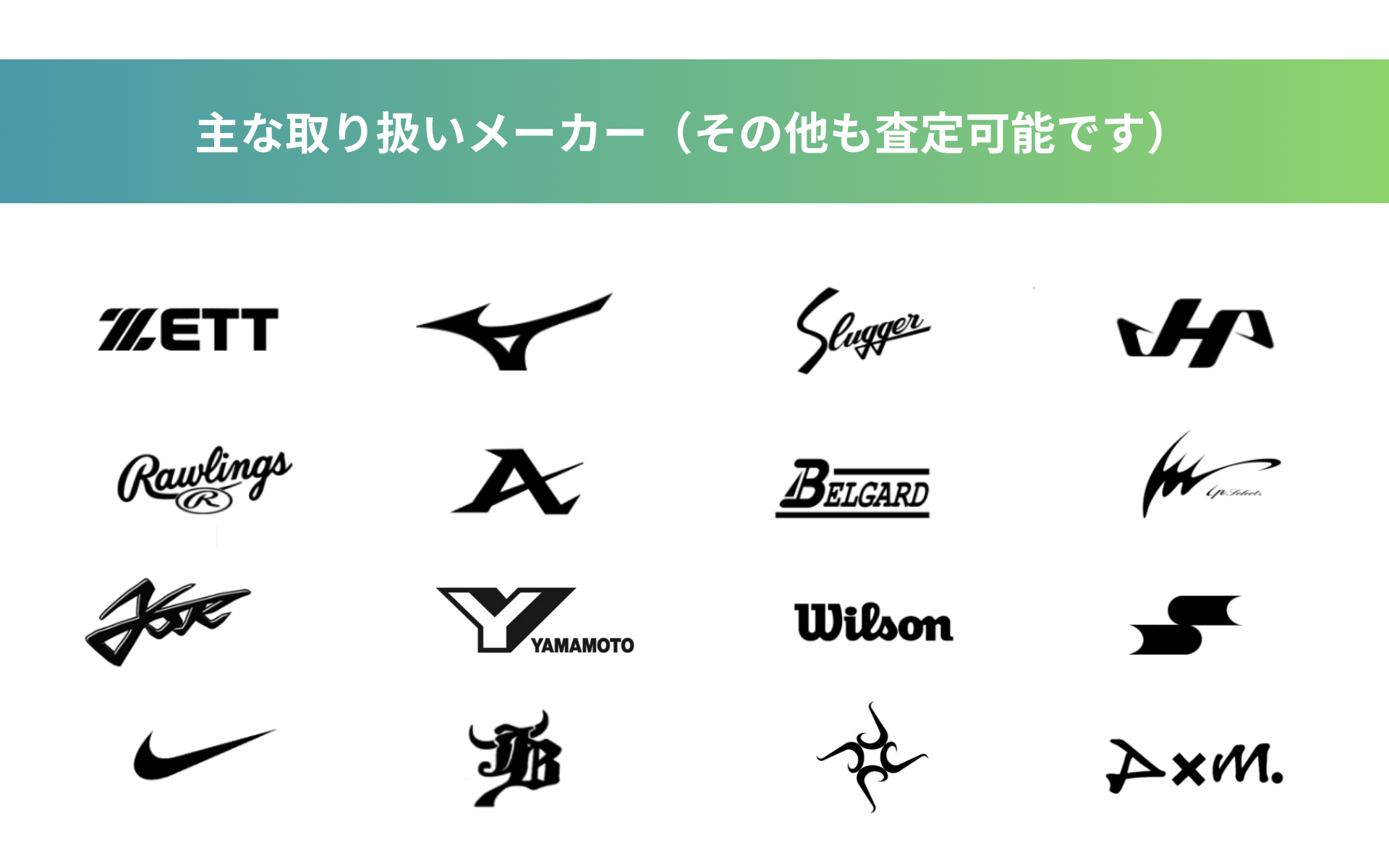 一般軟式用・一般硬式用・ジュニア用・ソフトボール各種の使用済みから新品(未使用品)やプロ支給品まで幅広く対応いたします。